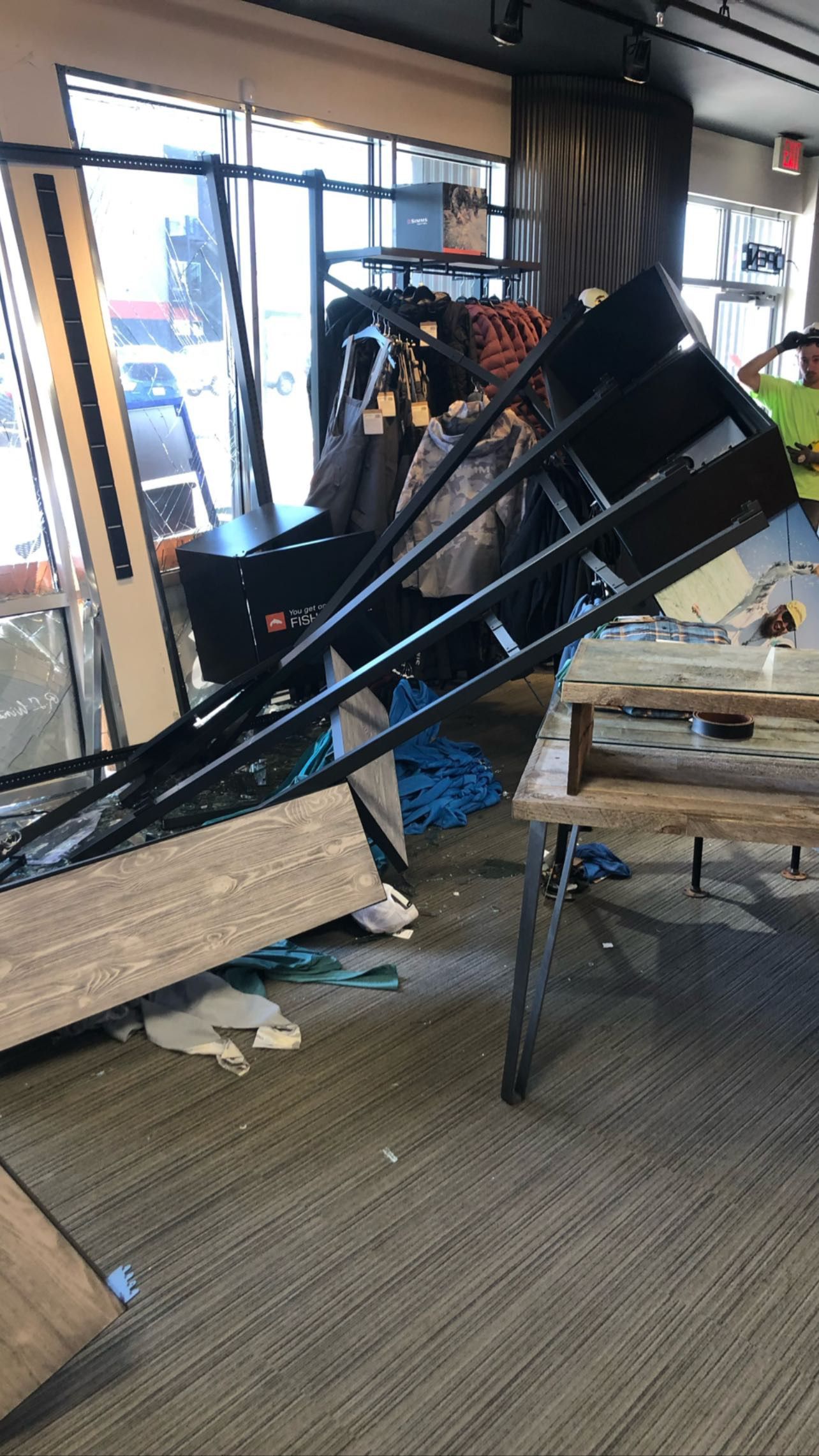 Yesterday, as evident from the preceding context, it appears that an individual became disoriented and mistakenly believed that the River’s Edge Fly Shop, situated directly across the street from the Simms factory, was a drive-in McDonald’s. Alternatively, one might jest that this individual simply couldn’t resist the allure of the new Simms Freestone Z Stockingfoot wader and unintentionally ended up colliding with the fly shop.