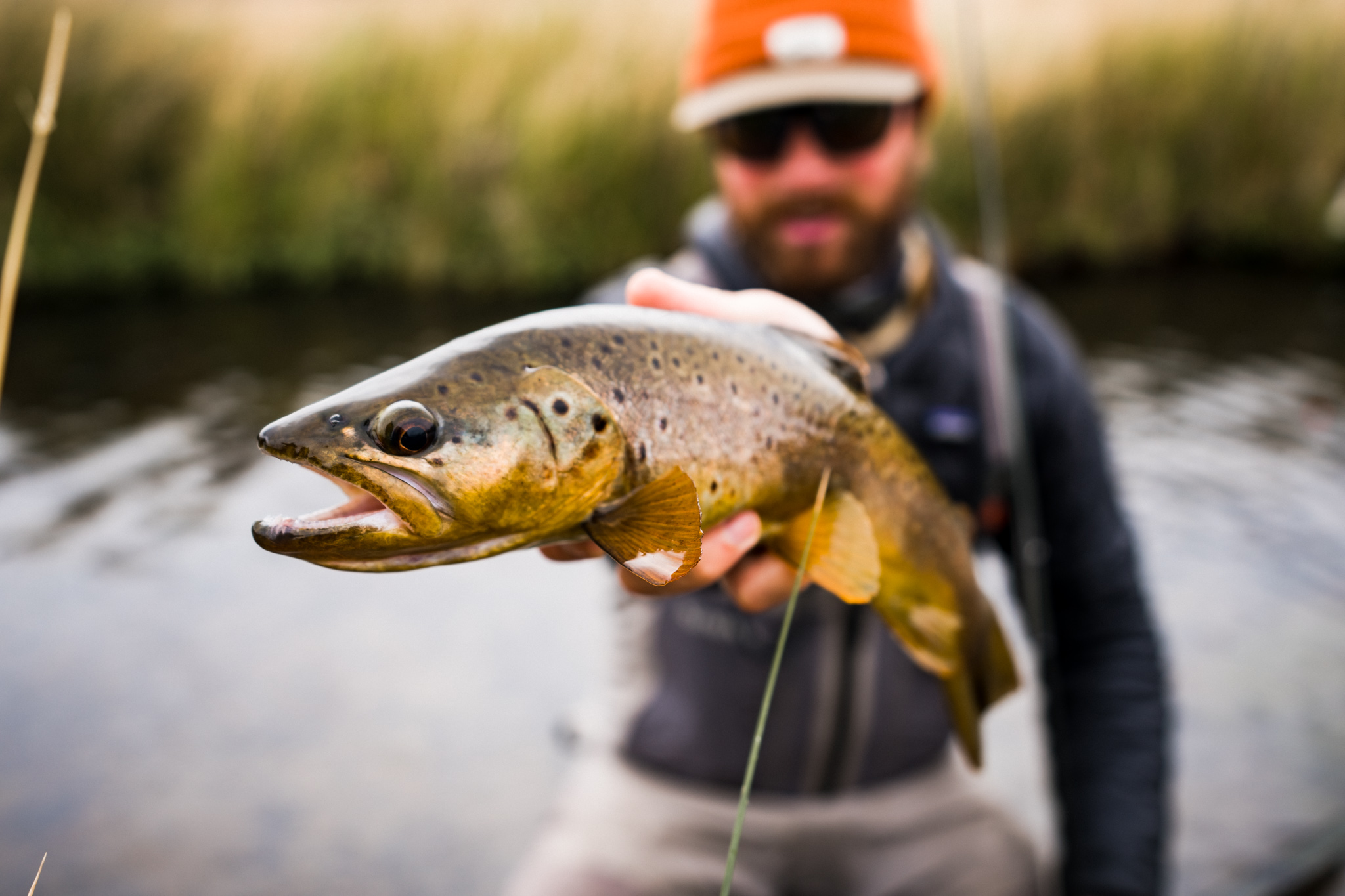 We sneak our way through the tall grass on the bank to send casts up into the deep pools. We connect with a few fish on dries and then decide to throw on a streamer. It’s on!