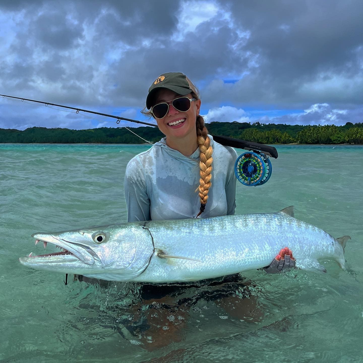 “My boyfriend grabbed its gill plate, and that’s when we really saw how big it was. We couldn’t believe how huge and shiny it was, and the hook was perfectly placed in the corner of the mouth, no damage at my 80lbs at all. All we could do was laugh about this insane fish that I somehow managed to land. None of had seen a barracuda that big, none of us had never even seen pictures of a barracuda that big. The fish was released and the locals would not believe that we caught that big of a barracuda inside the lagoon.”