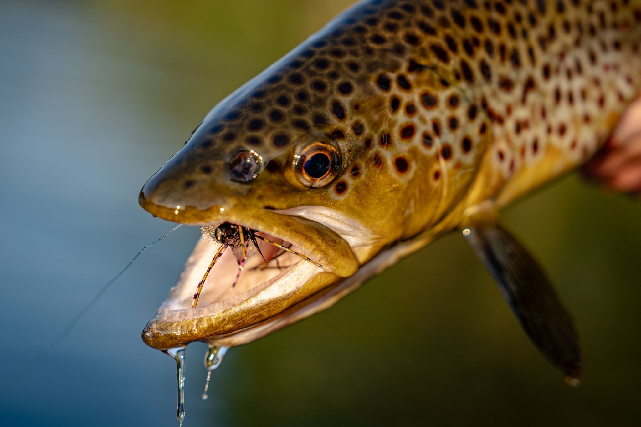 The cast landed with a plop, sending circles of ripples around the fly as it settled. The noise of the fly landing made the fish spook, but it circled back to its holding position right in line where the fly would be coming into sight. In slow motion, the fish moved towards the fly and slurped it down. Holding back all instincts, the angler waited patiently to set the hook until the trout’s head was back underwater. As the hook was set, the fish thrashed back and forth with a few powerful shakes of its head.